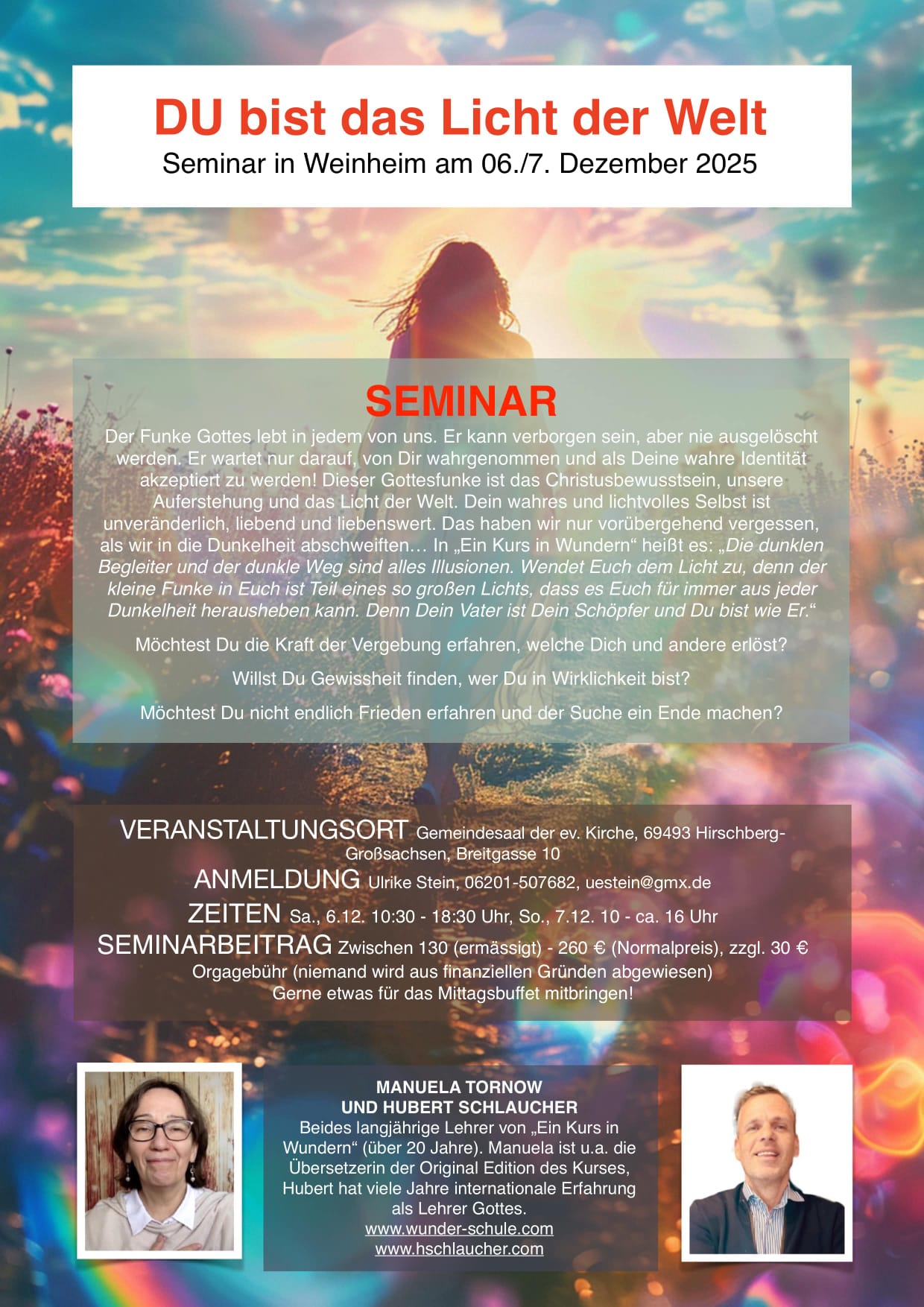 06Dez(Dez 6)10:0007(Dez 7)16:00DU bist das Licht der WeltSeminar in Weinheim