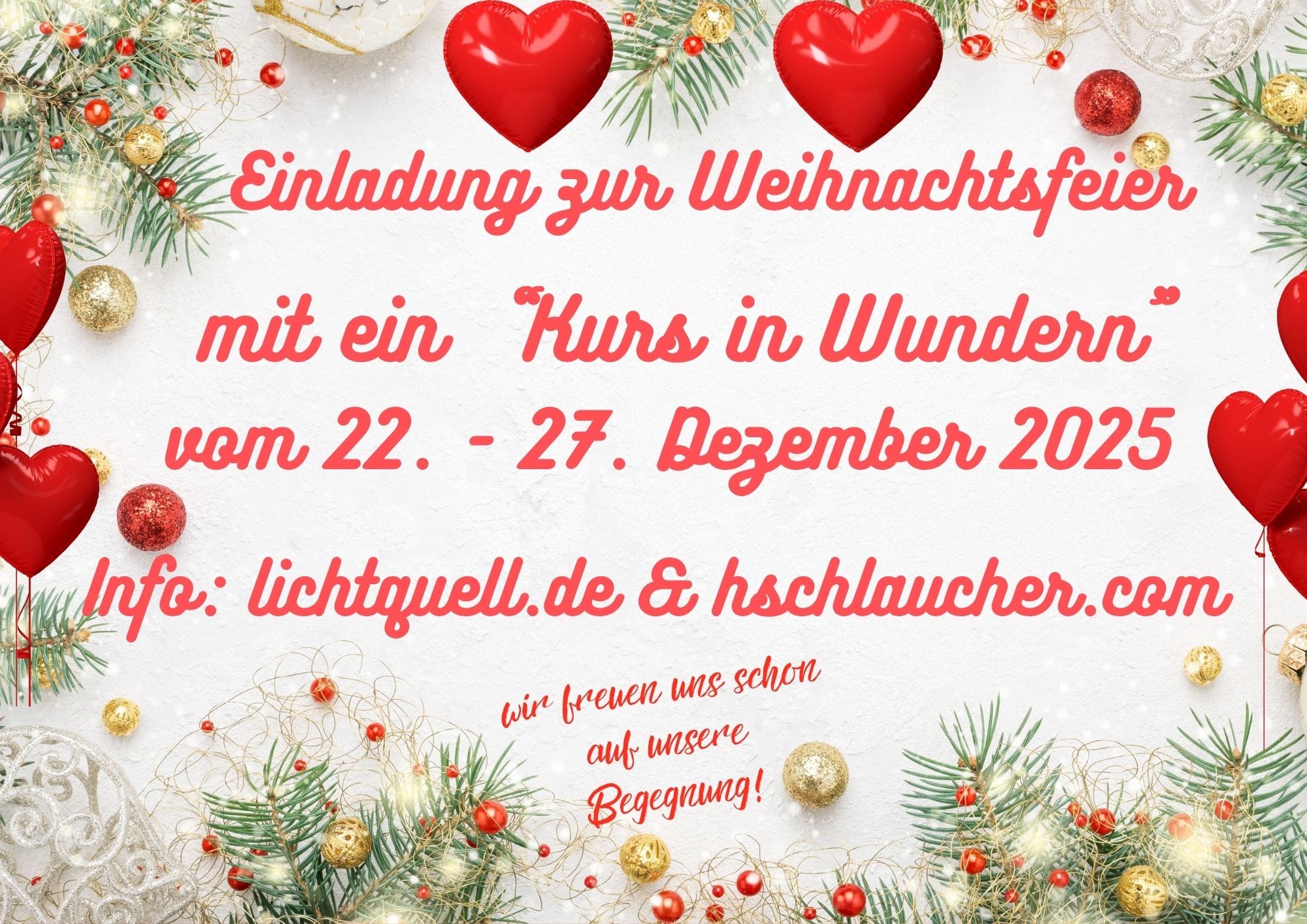 22Dez(Dez 22)15:0027(Dez 27)18:00Weihnachtsfeier mit "Ein Kurs in Wundern"